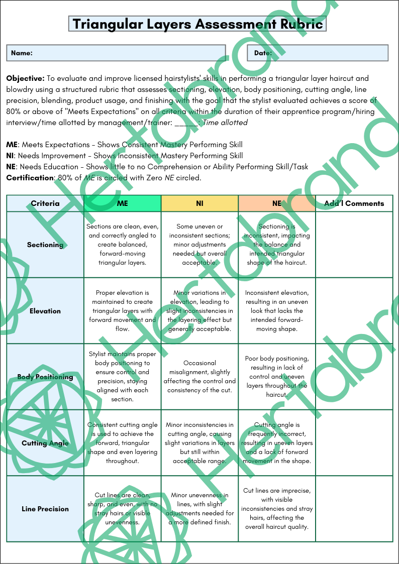 Assess and refine triangular layering haircut execution using this comprehensive, skill-based rubric.